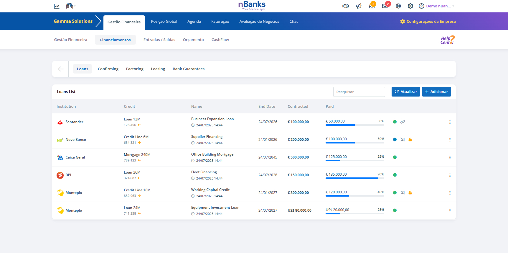 Nova Área de Financiamentos com gestão e controlo dos empréstimos.